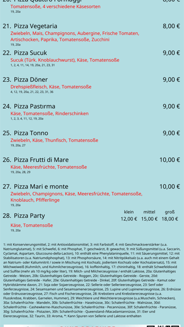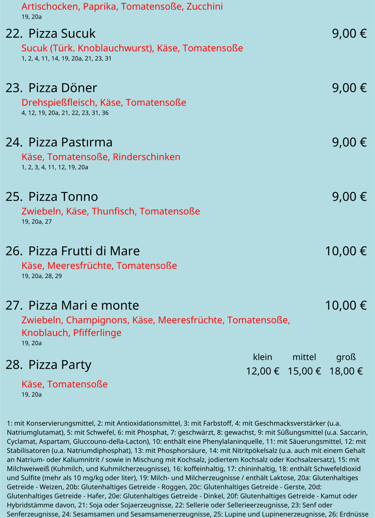 Allergene & Zusatzstoffe sind bereits automatisch hinterlegt.
